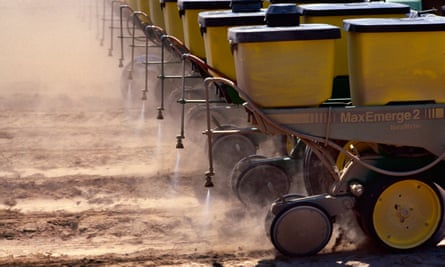 A 12-row planter plants cotton and applies a pre-emergence herbicide. Photograph: Design Pics Editorial/Universal Images Group/Getty Images